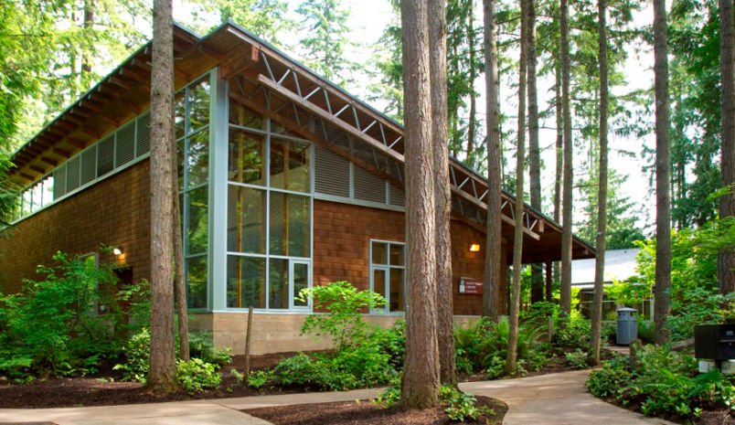 Built for the King County Library System, the Maple Valley Library was a collaborative effort shared by R|MILLER Inc, James Cutler, and Johnston Architects. This 12,000-square-foot building sits on a heavily wooded site with exposed-board and batten-formed foundation walls. Its U-like shape was designed to minimize visual and environmental impacts, and rainwater from the shed roof is collected and directed to a concrete, ziggurat-inspired collection and filtration system. The building is simple stud wall construction with open trusses and large windows to maximize daylight. Great care was given to every phase of construction, netting the project the AIA National Gold Award.